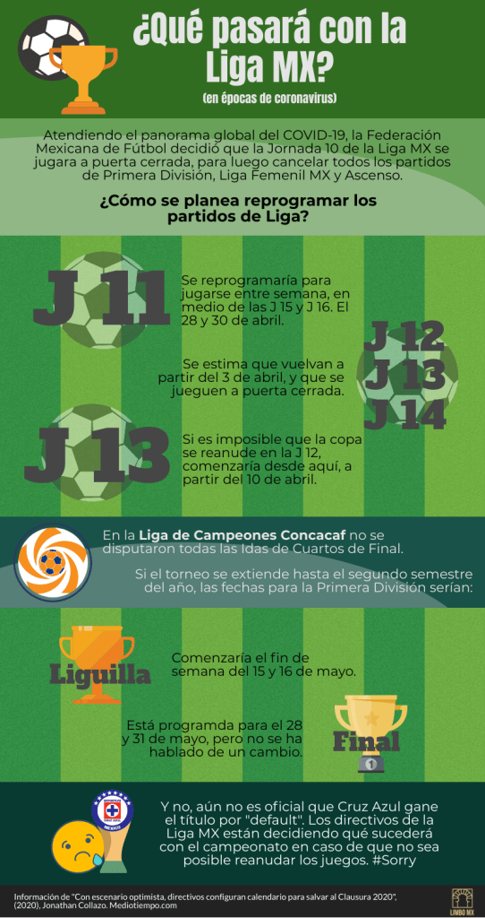 Estas medidas de prevención han afectado también al fútbol. La semana pasada, los aficionados presenciaron la realización de la Jornada 10 a puerta cerrada, así como la cancelación de los partidos de Primera División, Ascenso y Liga Femenil. Ante esta situación, nos preguntamos, ¿qué pasará con los partidos a partir de aquí? A continuación, respondemos esta pregunta: