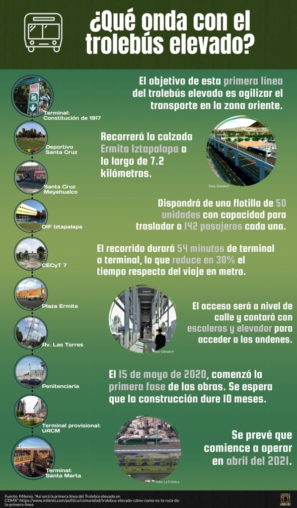 Otro medio de transporte público. Como quien dice, otra rayita más al tigre. El 15 de mayo de 2020 inició la primera fase de las obras para la primera línea de trolebús elevado en la Ciudad de México. Esta pretende agilizar el transporte en la zona oriente de la Ciudad. ¿Cómo ven? Acá les contamos todos los detalles.